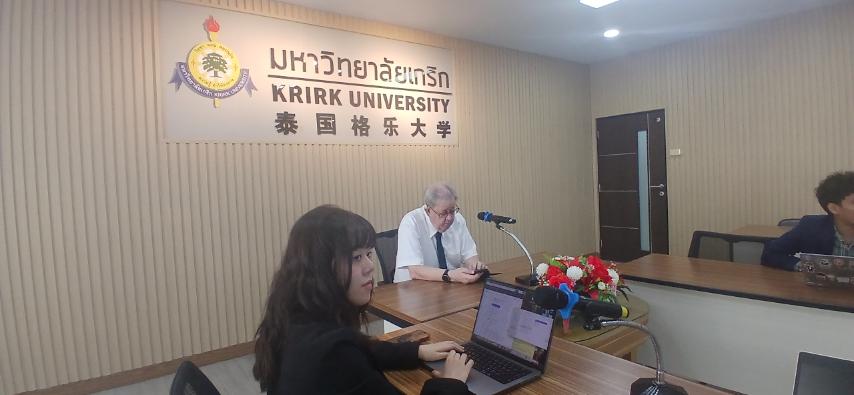 On 8 January 2026, Krirk University hosted an experience-sharing session with Mr. Htet Aung Kyaw, who represented the university at an international conference in Oxford, UK (2025).
